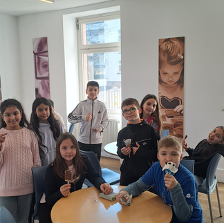Heute haben wir einen spannenden Ausflug ins Mathematikum in Gießen gemacht. Schon die Busfahrt war für viele Kinder ein kleines Abenteuer. Als wir angekommen sind, waren wir alle sehr neugierig, was uns dort erwartet.